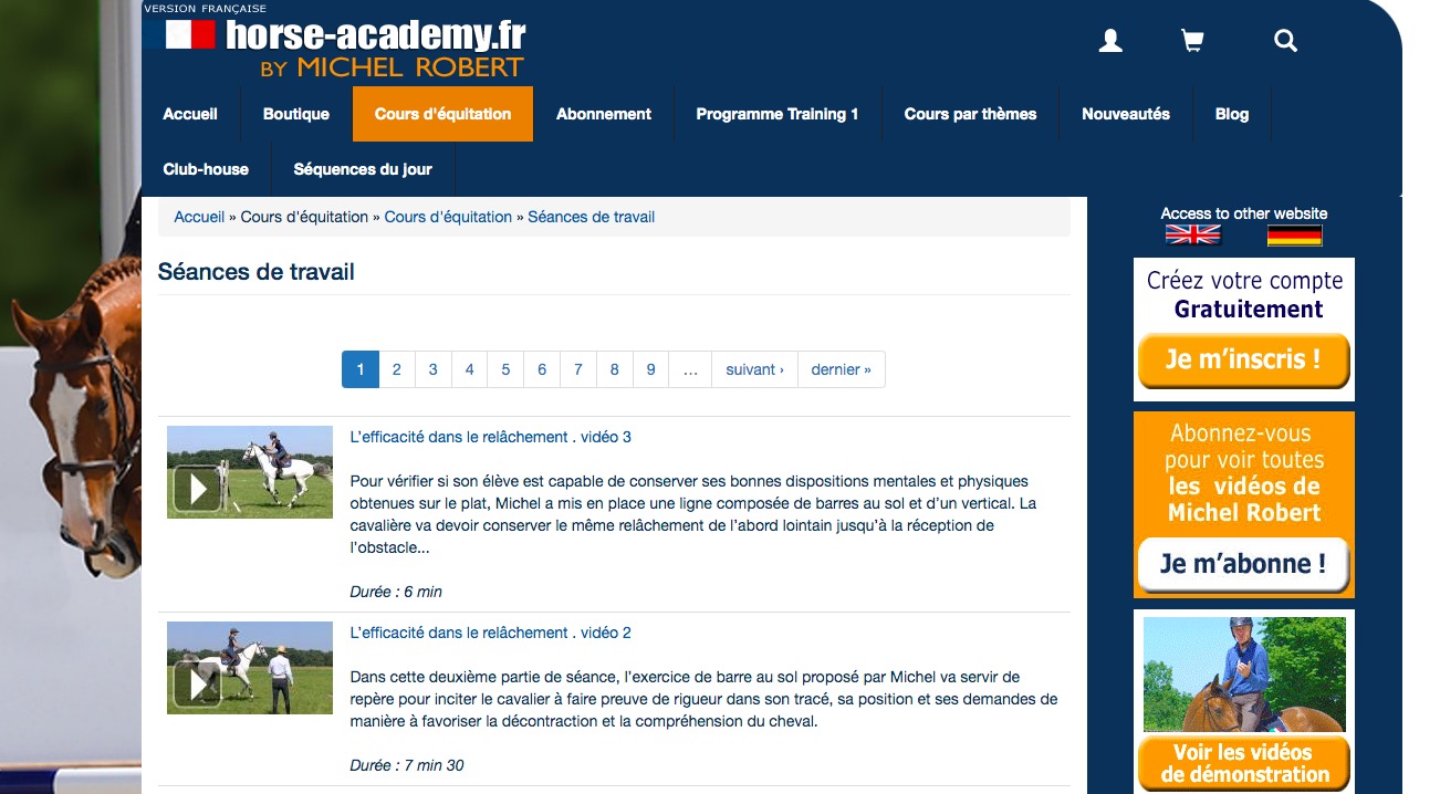 Il existe aussi des plateformes équestres dédiées à l’apprentissage des cavaliers. On peut y retrouver de nombreux conseils mais aussi de véritables programmes d’entraînement élaborés avec des professionnels. Pour les cavaliers d’obstacles, il existe par exemple la plateforme Horse Academy créée par le cavalier français Michel Robert. On peut également citer Blooming Riders qui propose un contenu très varié avec des focus sur les jeunes chevaux, le horsemanship, les soins et la santé du cheval, le dressage, le travail au sol, etc.